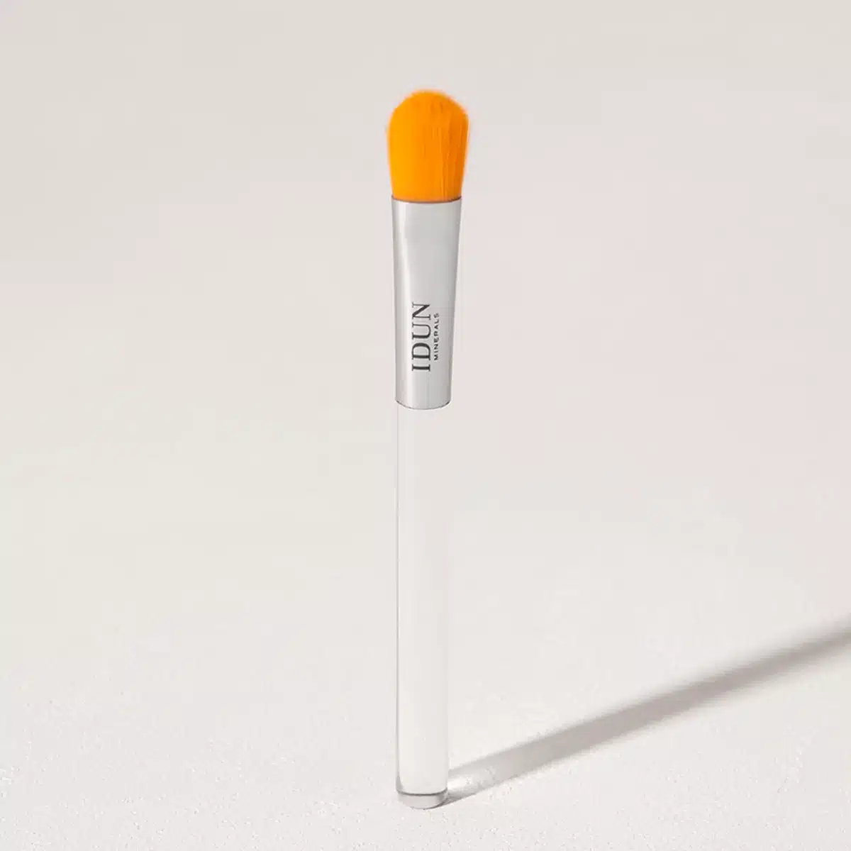 Achieve effortless blending of cream textures with IDUN Minerals Concealer Brush. Boasting a flat tapered tip with a subtle half curve, the velvety bristles perfectly replicate fingertips for a seamless under-eye concealing and smoothing of imperfections.