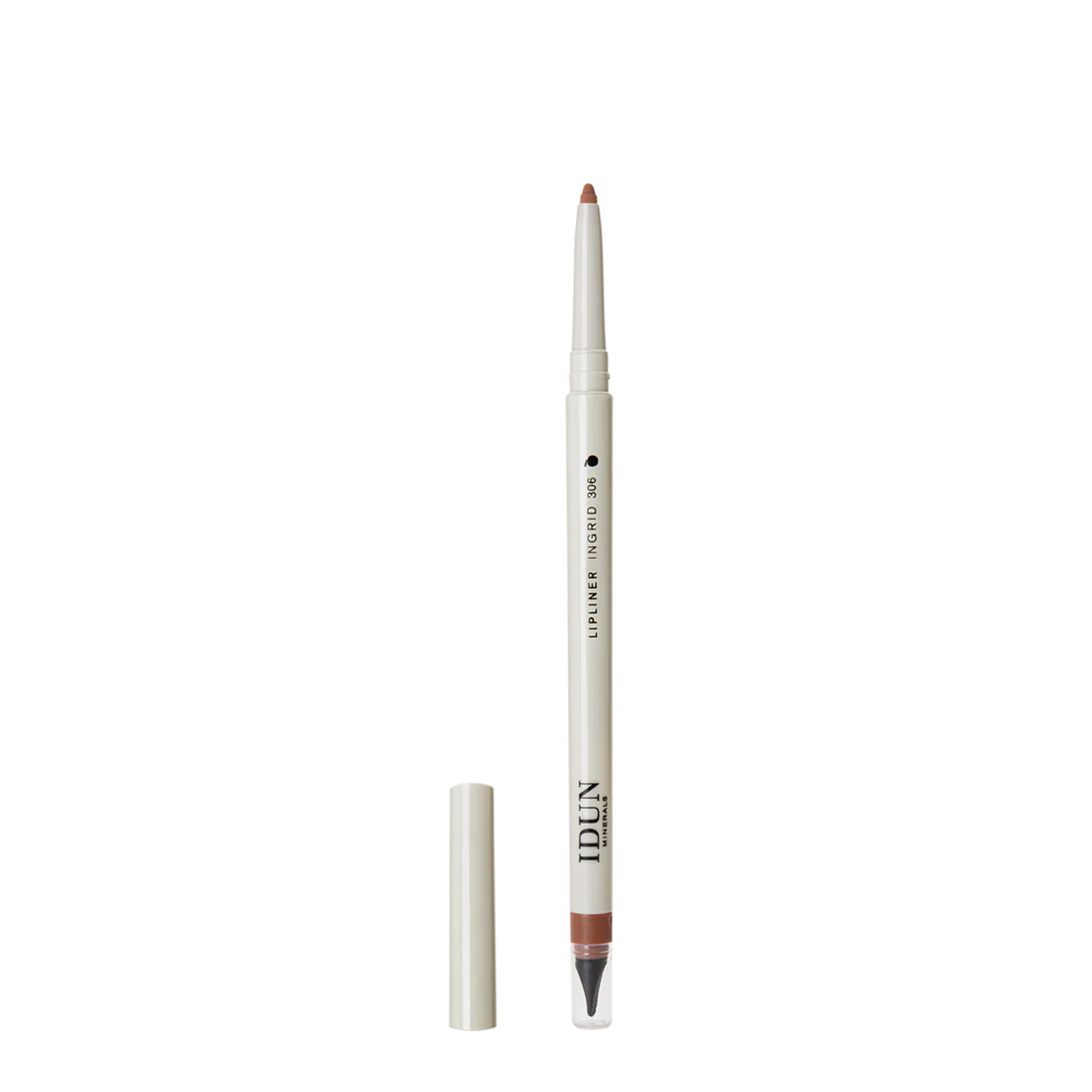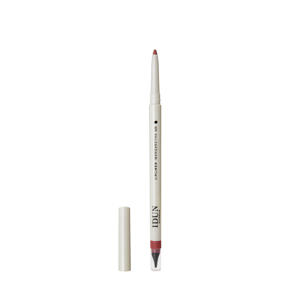 Line and define your lips for a perfectly contoured pout. IDUN Minerals Lipliner boasts a unique balanced blend of emollients, waxes and highly purified mineral pigments that give the vegan formula a creamy texture and smooth silky finish with a rich matte colour payoff. Enriched with caring jojoba oil keeping your lips soft and moisturized during use. Dual-ended design features a built-in sharpener and pout-perfecting paddle shaped precision tool.